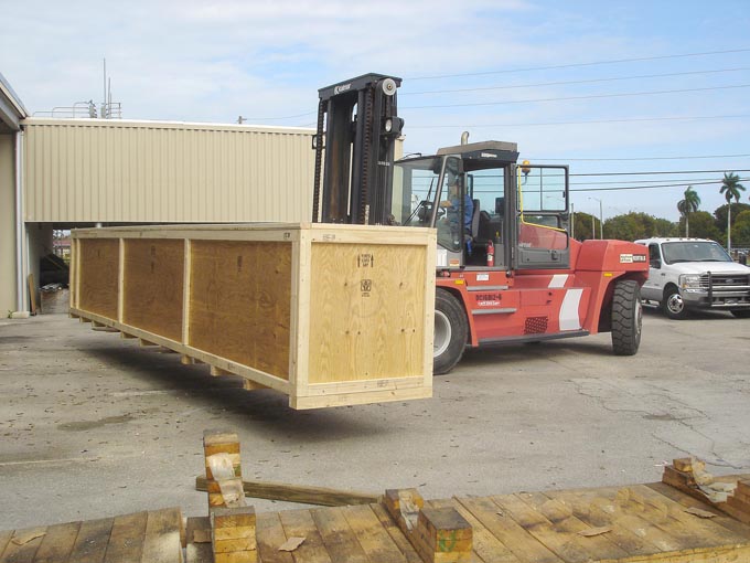 You may never have a cargo this heavy, but if you ever do, we can custom-design and custom-build a crate for it. The 70-foot, 99,000-pound cruise ship propeller shaft shown above is the largest load we’ve ever crated (so far). When it arrived in Port Everglade from Denmark, its crate had been damaged in shipping. So had the shaft itself. Working on-site in Port Everglade, we repaired the crate’s damage and reinforced the whole crate itself. As a result, the shaft made it safely across the Atlantic and back to Denmark for repairs.
